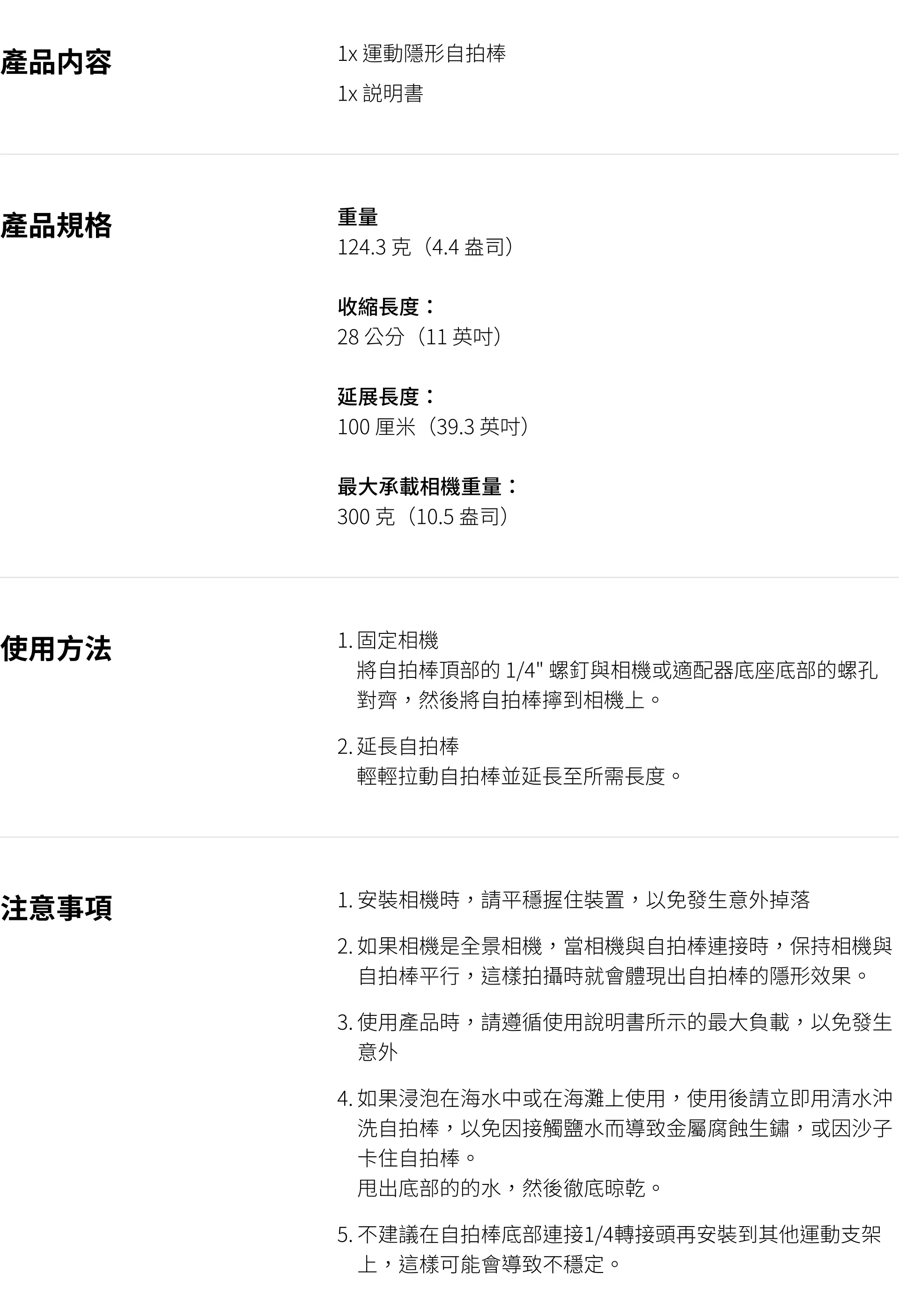 升級的堅固設計,適合在任何環境下使用。内建防沙過濾器,可阻擋沙子和污垢顆粒損壞自拍棒。