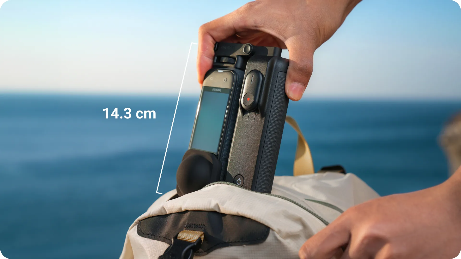 可折疊設計,外出更便攜。收納尺寸僅 14.3cm,手掌大小。附送鏡頭保護套,口袋輕鬆裝。
