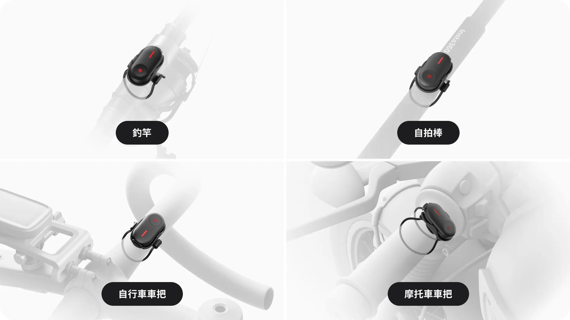 包裝內含彈性固定繩,支援多機位安裝,可固定在車把、釣竿、自拍棒等物品上使用。
