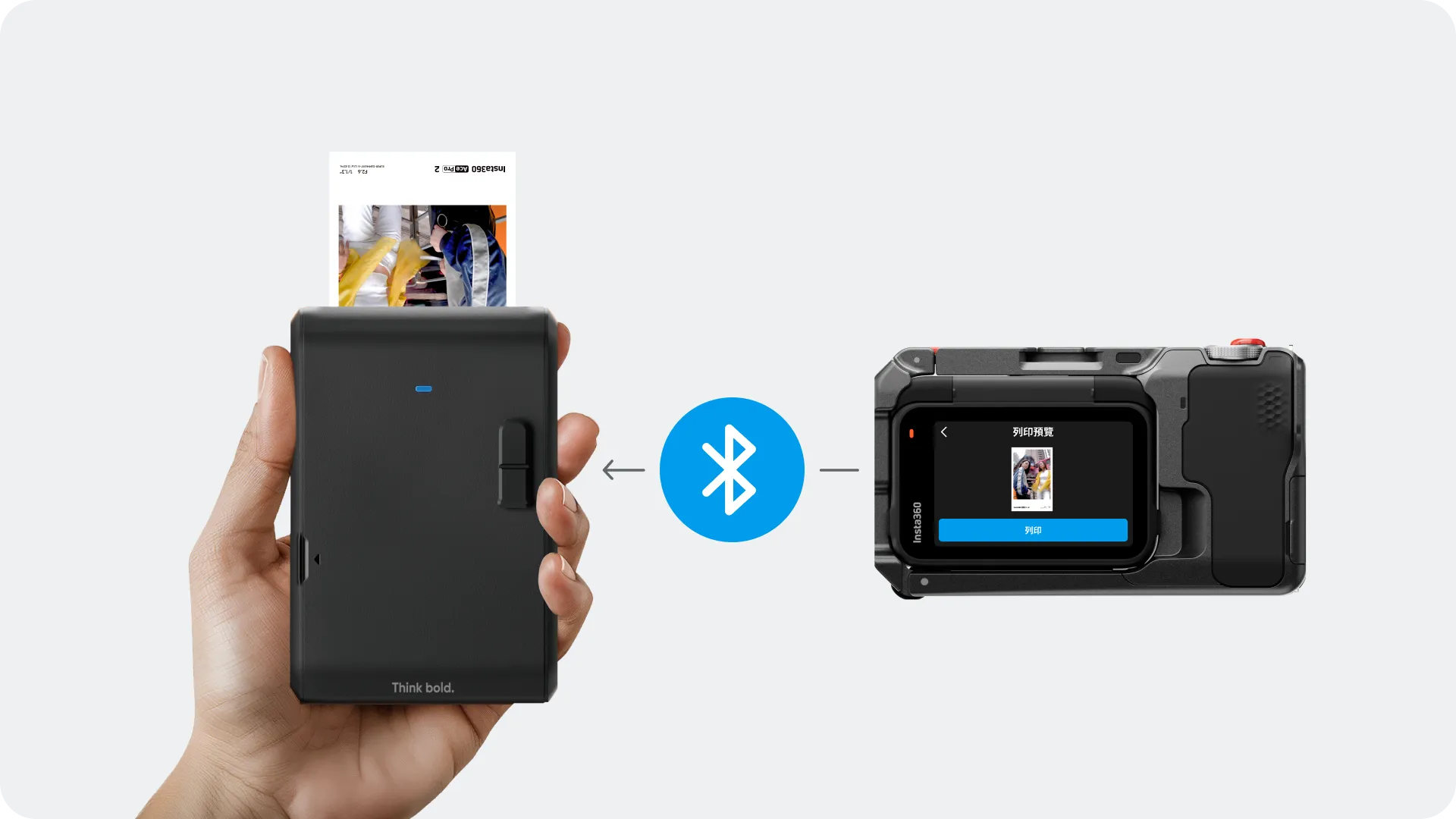 小巧便攜,藍牙直連Insta360 Ace Pro 2,即拍即印,定格美好更出色,盡情享受拍攝樂趣。