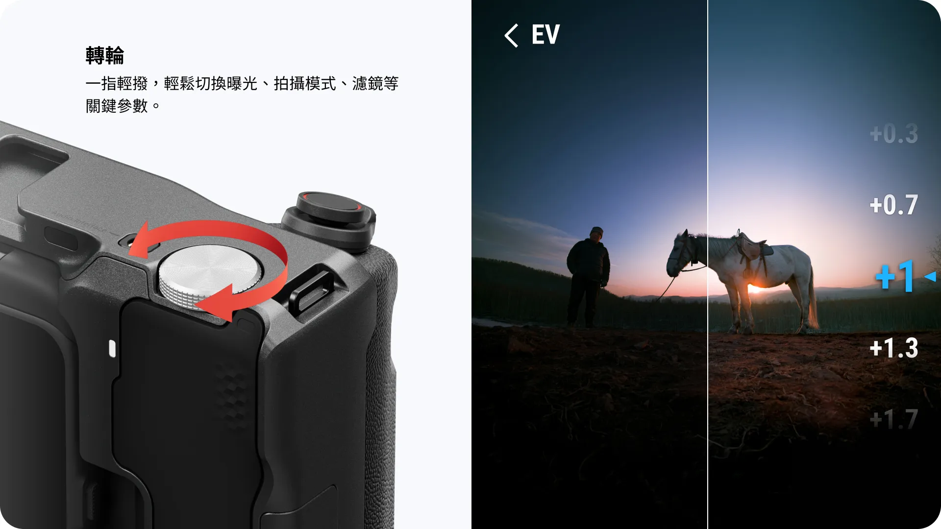🌟可直接與相機連接,透過手柄進行無損變焦、曝光控制、簡易模式切換等操作。
